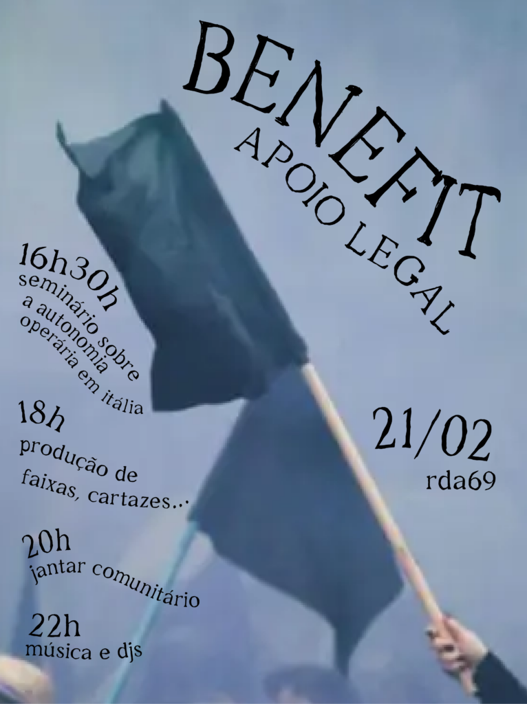 Juntamo-nos no próximo dia 21 de Fevereiro (Sábado) no RDA69 – Regueirão dos Anjos, para um evento-benefit que reverterá para o apoio legal a estes camaradas.
