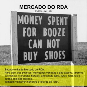 Sábado é dia de Mercado do RDA.Para além dos petiscos, mercearias variadas e pão caseiro, teremos cosméticos e produtos herbais, artesanato têxtil, livros, fanzines e…
